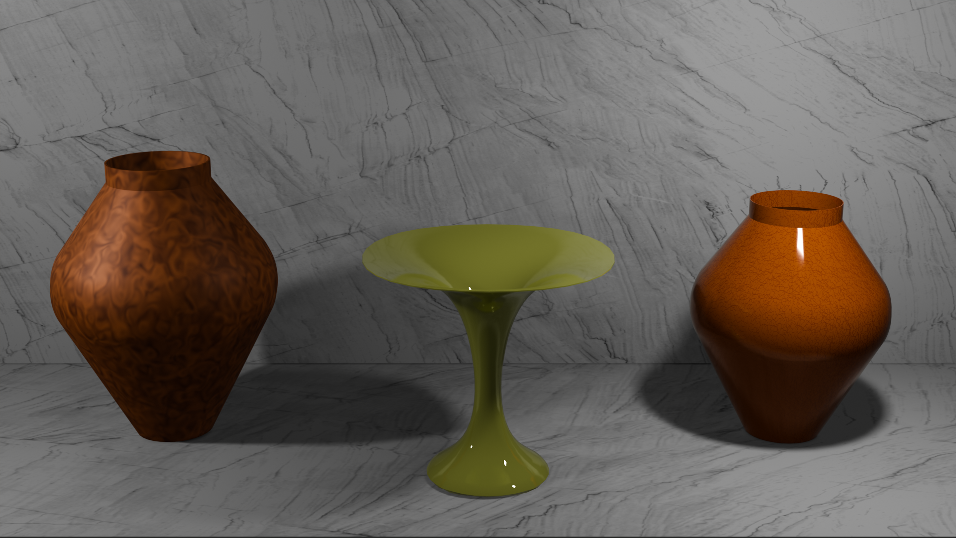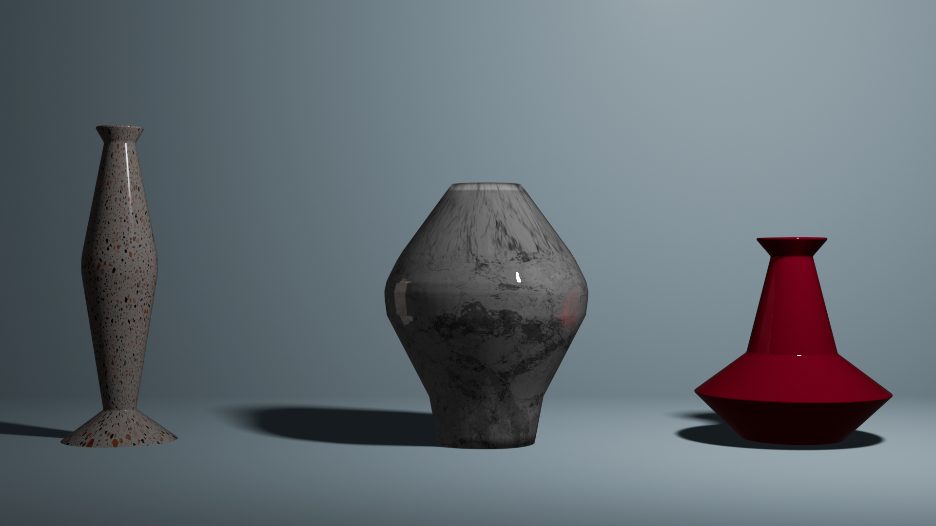A series of 3D vase studies, modeled and sculpted entirely in Blender. These pieces explore form, texture, and material properties, demonstrating how digital sculpting can translate to realistic and expressive objects. A combination of rendered images and a screenshot of the interface illustrates both the final result and the process behind the modeling.