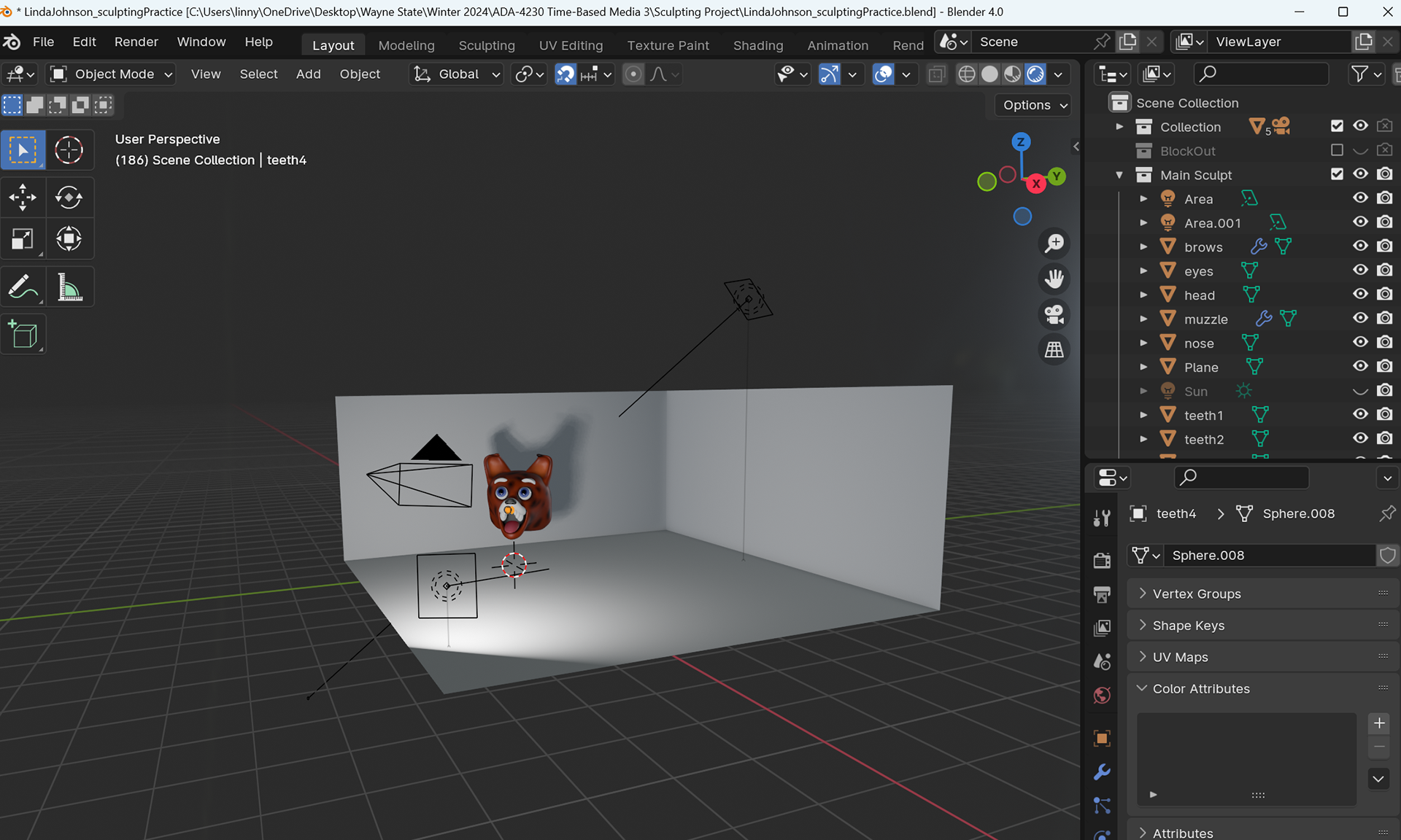 A fun, cartoony animation of birds interacting with a slide and swings. This project demonstrates my ability to combine modeling, sculpting, animation, and storytelling in a playful, engaging 3D scene.