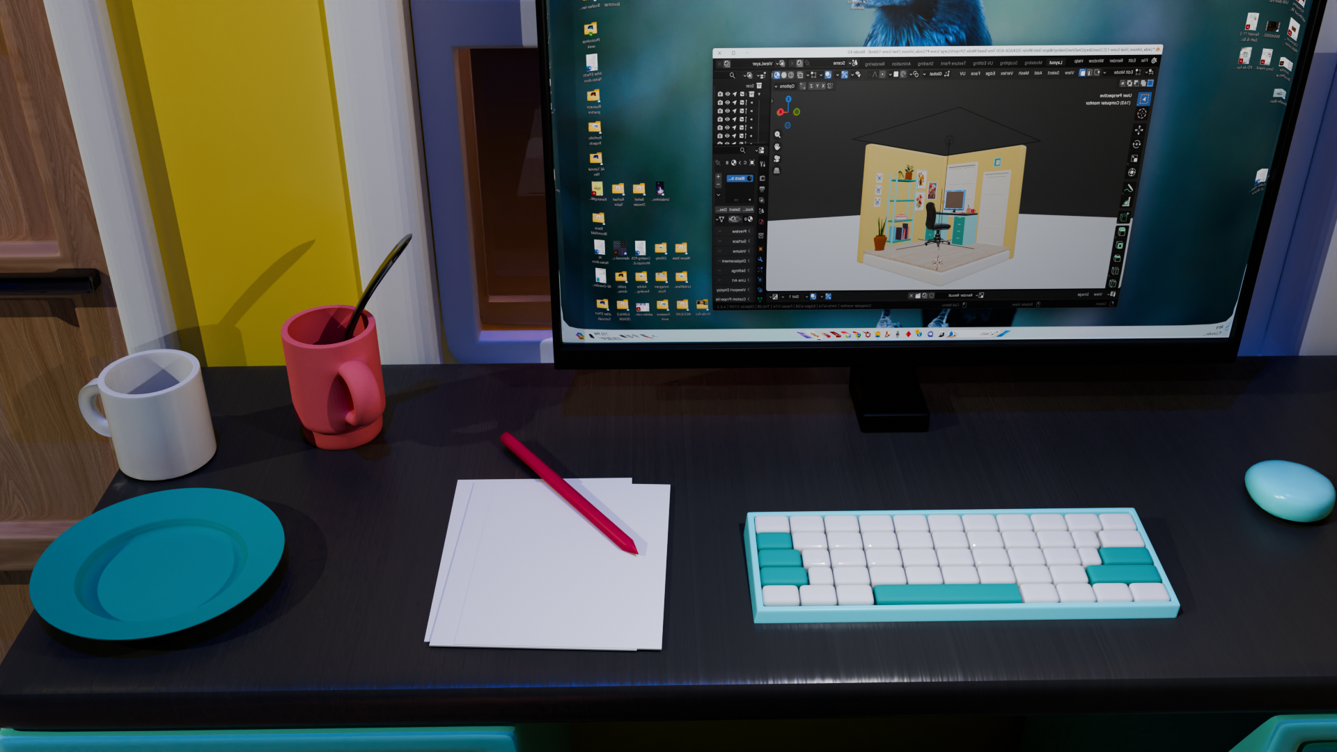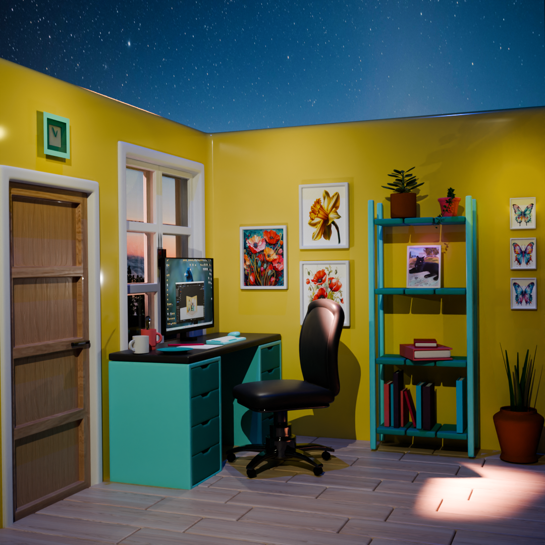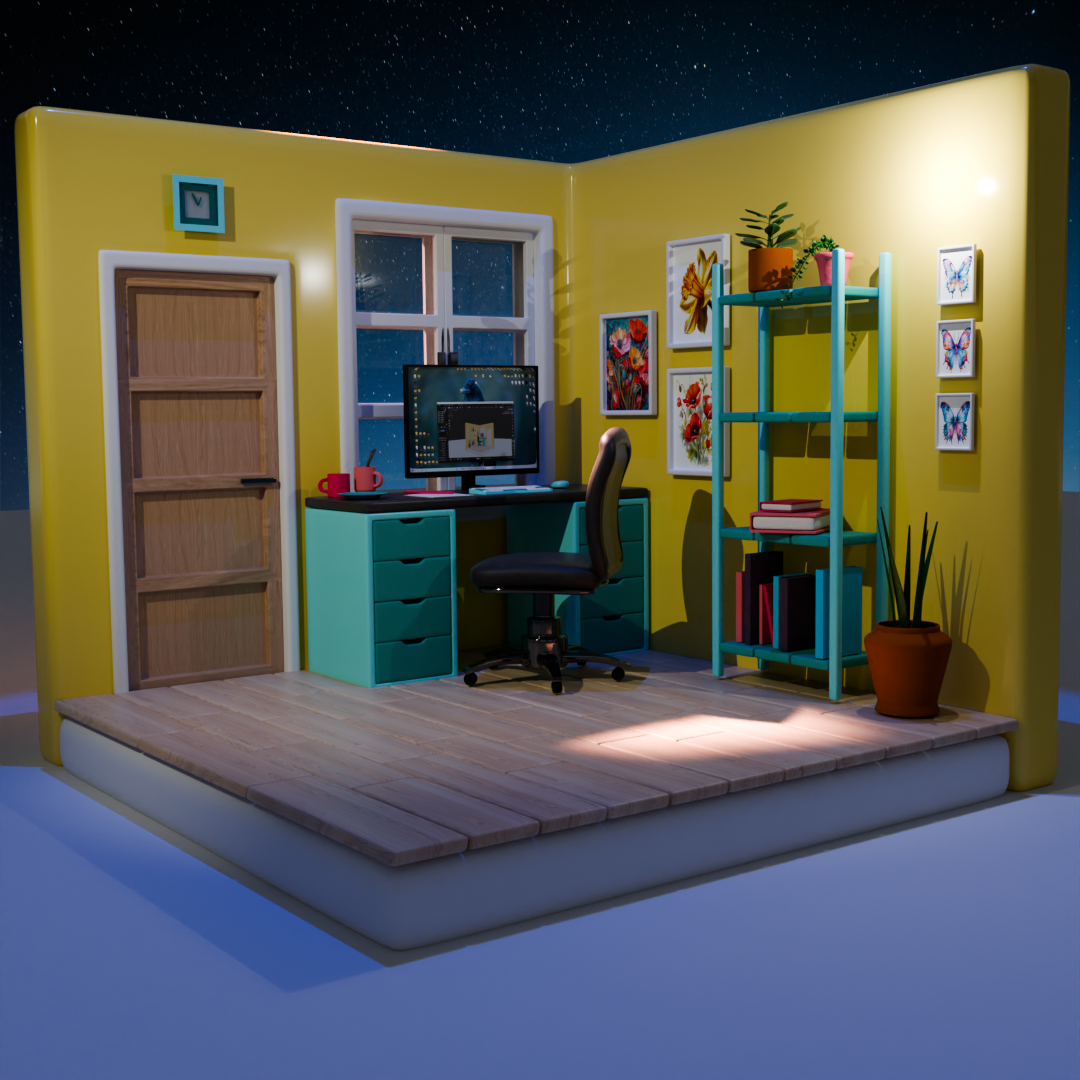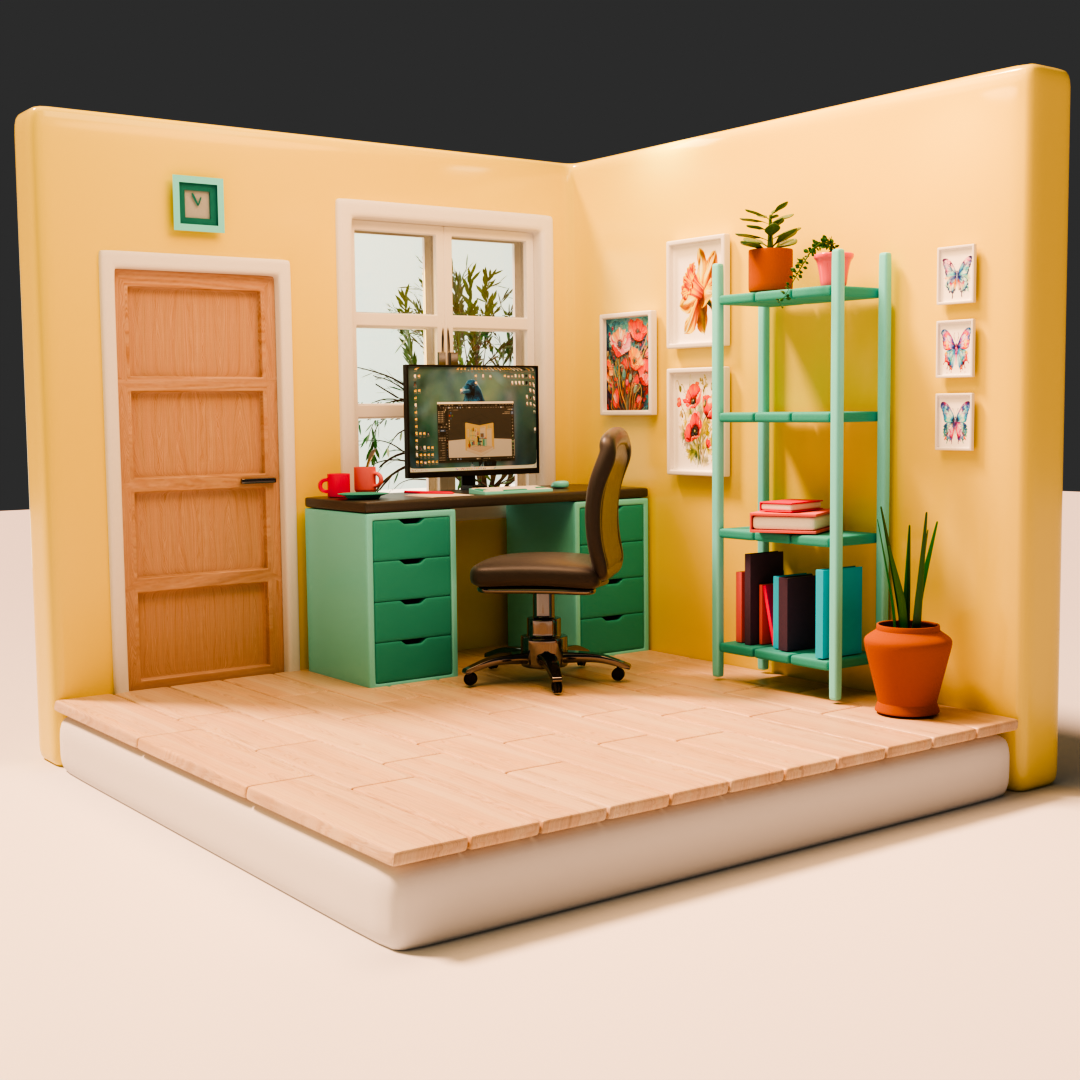 An ongoing exploration of form and texture in Blender. These 3D studies—from vases to morphing shapes to small spaces—are driven by curiosity and a love for small, surprising details. The first project, an Isometric Room Study, presents a fully realized office space where every object, furnishing, and detail—from the floor and walls to the pens, keyboard, and even the image on the computer monitor—was carefully modeled and designed by me. Lighting, textures, and close-ups of objects highlight technical skill, attention to detail, and storytelling in 3D design.