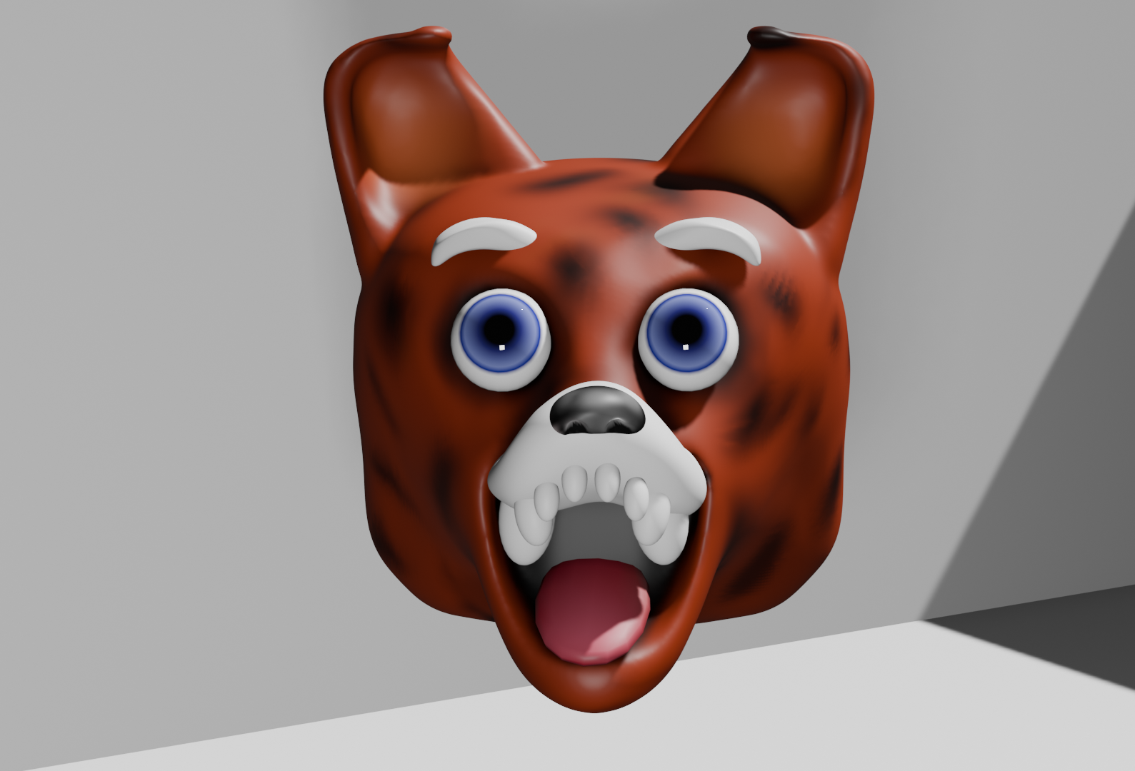 A character-focused 3D study of a dog’s head, fully modeled, sculpted and textured in Blender. This project emphasizes sculpting anatomy, expressive features, and subtle surface details. One image shows the rendered model, and the other captures the Blender interface to demonstrate the modeling process.