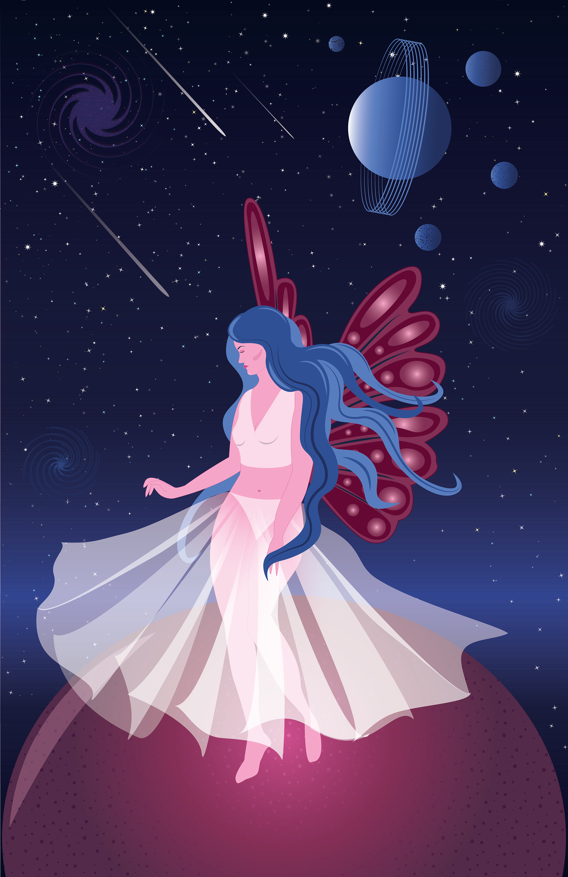 Vector illustration created in Adobe Illustrator, originally designed as a travel poster concept. This piece blends fantasy and science fiction through layered vector composition.
