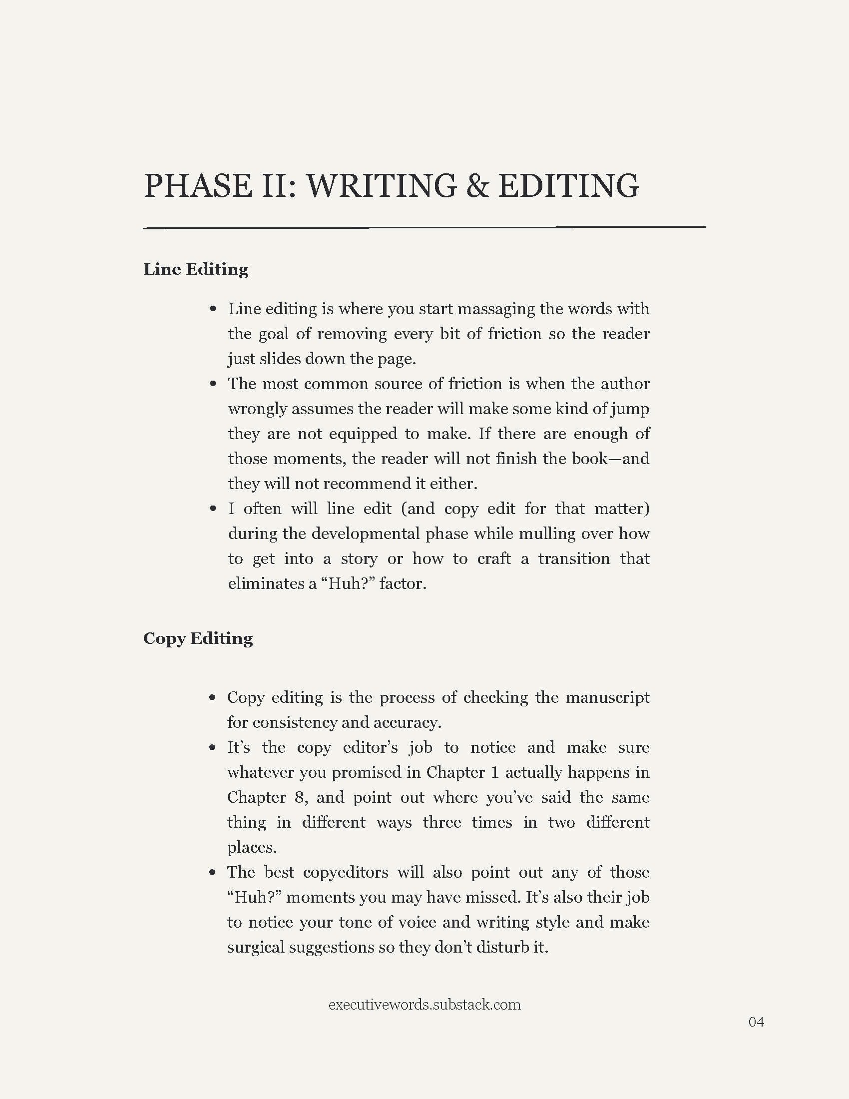 A 12-page educational PDF created as a free resource for potential clients, outlining the book creation process from discovery through promotion.