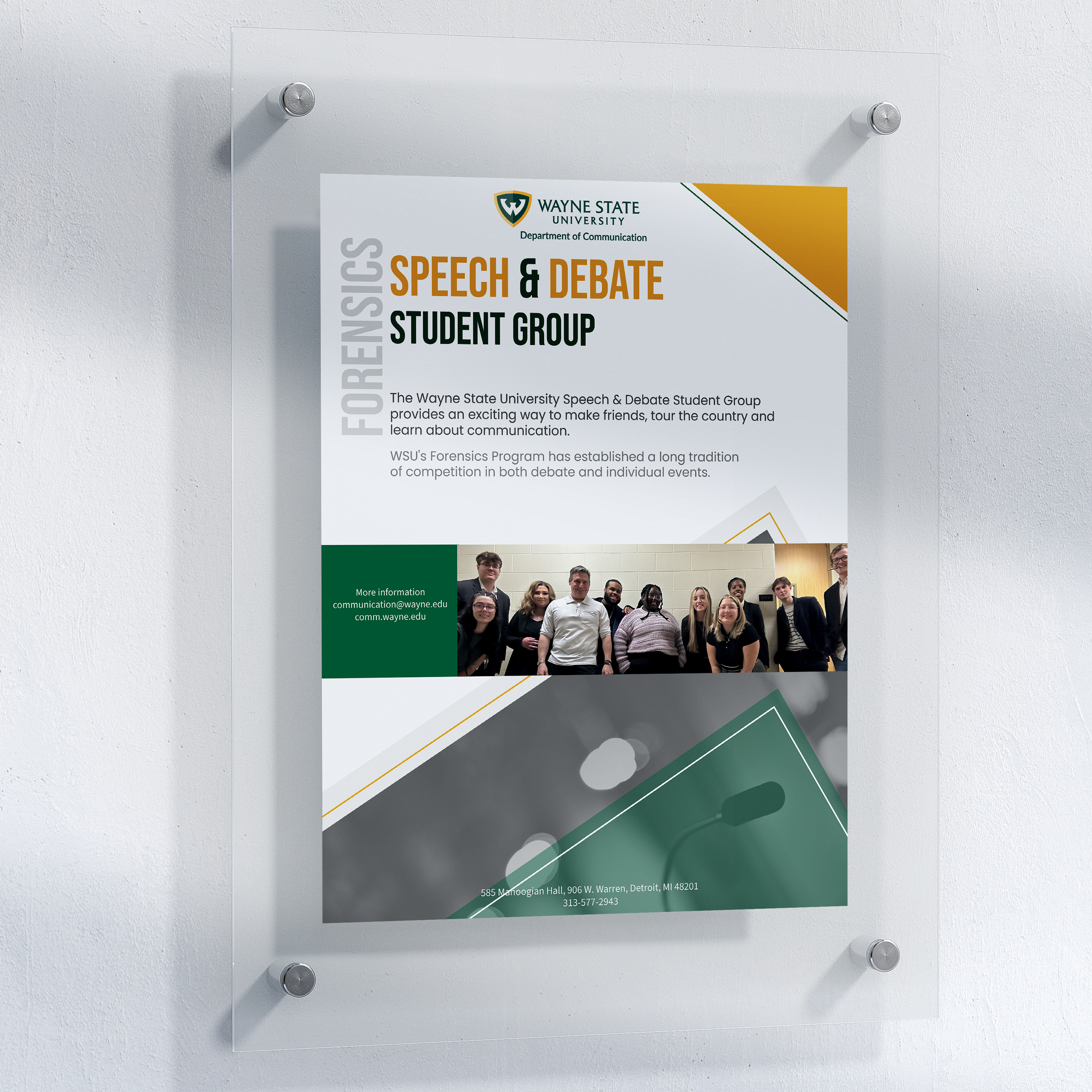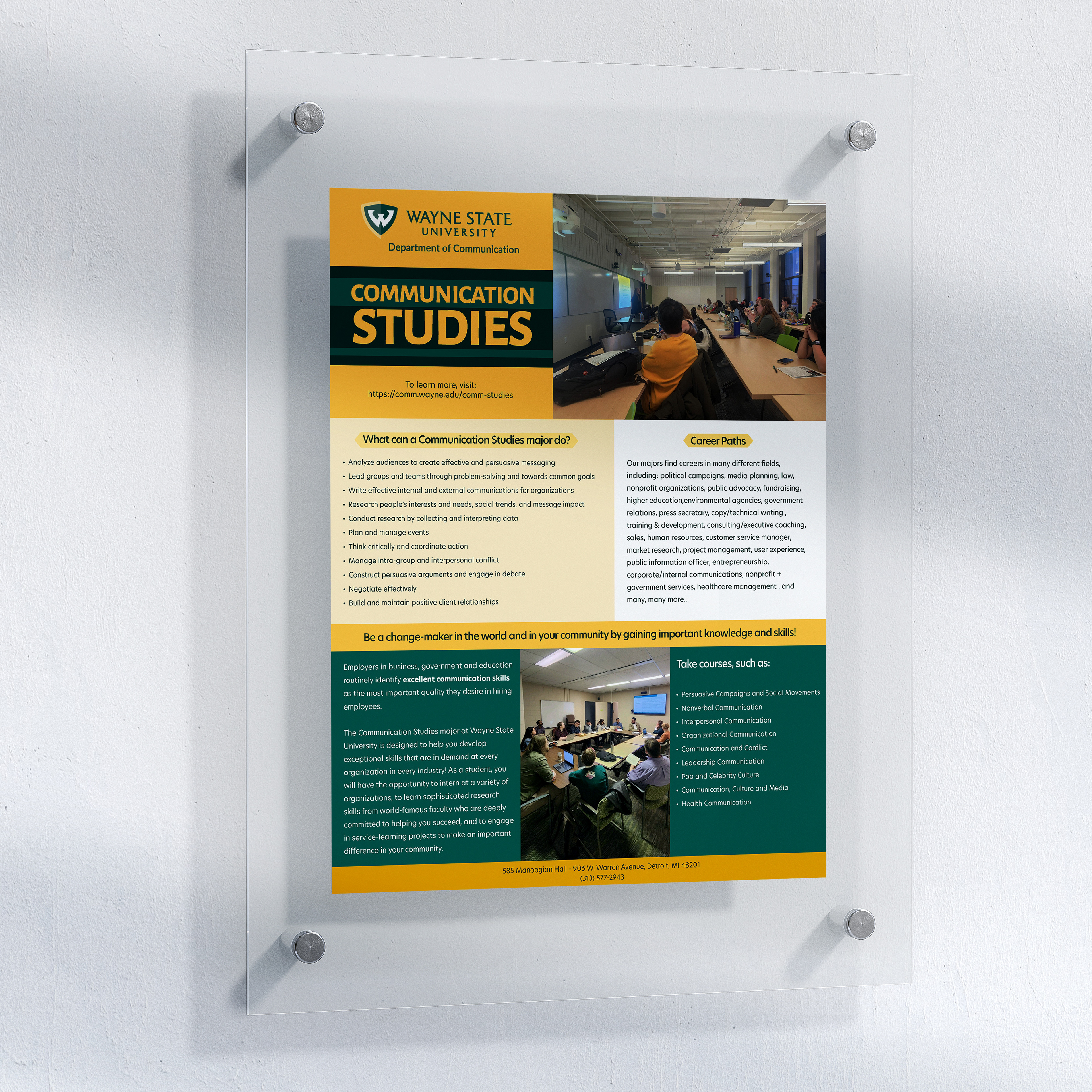 A selection of print promotional materials created for university departments and student organizations. Work includes flyers, programs, and inserts designed for on-campus distribution, with an emphasis on hierarchy, clarity, and consistency within established institutional systems.